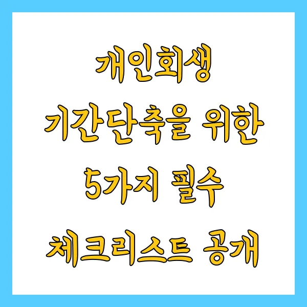 자, 이제 여러분이 그토록 기다리시던 개인회생 기간 단축을 위한 5가지 필수 체크리스트!! 드디어 베일을 벗습니다! 두근두근?! 지금부터 꼼꼼하게 살펴보고, 나에게 꼭 맞는 전략을 세워보세요~