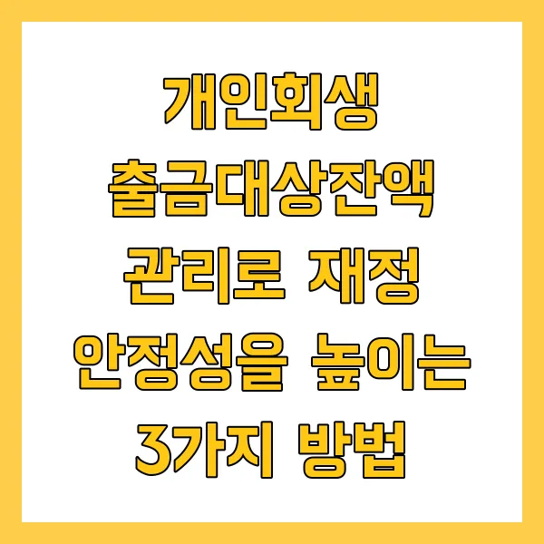 개인회생 절차를 밟고 있다면, 매달 변제금 마련에 대한 부담과 미래에 대한 불안감을 느끼실 수 있습니다. 특히 출금대상잔액 관리를 소홀히 한다면 재정적인 어려움에 직면할 가능성이 높습니다.