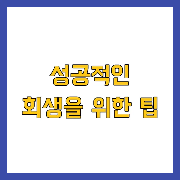 자, 이제 성공적인 회생을 위한 핵심 팁들을 모두 살펴보았습니다! 이 팁들을 잘 활용한다면, 빚의 부담에서 벗어나 새로운 삶을 시작할 수 있을 것입니다. 힘든 시간 속에서도 희망을 잃지 않고 꾸준히 노력한다면, 분명 밝은 미래가 여러분을 기다리고 있을 것입니다.