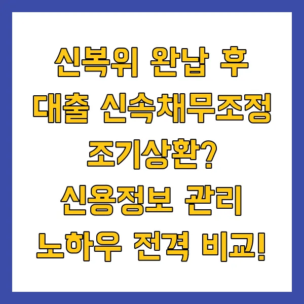 본 글에서는 신복위 완납 이후, 대출 및 조기상환에 대한 궁금증을 해결하고, 신용 정보 관리의 핵심 노하우 를 심층적으로 분석하여 제시합니다.